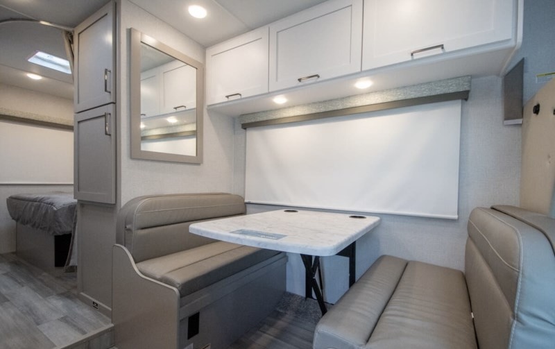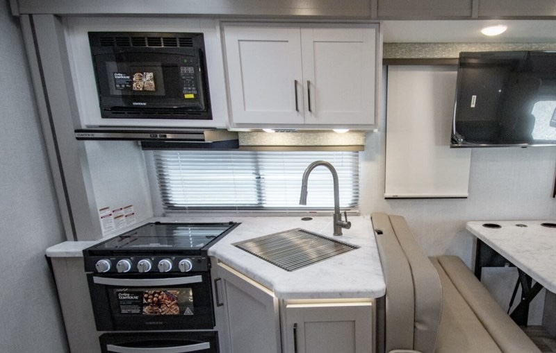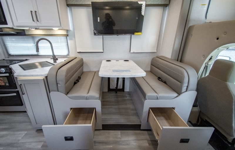 Choose this RV if you desire ample space to unwind. The spacious slide-out makes entertaining a breeze. It stands as our largest unit, complete with an outdoor entertainment center.